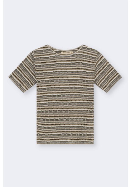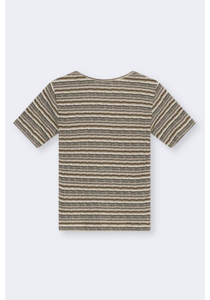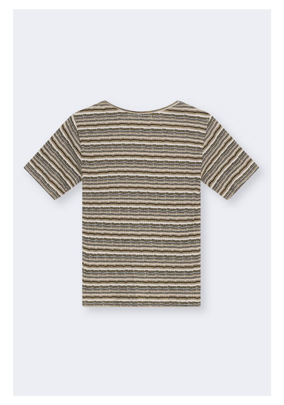 Camiseta Canalé Rayas Mujer – 100% Algodón Fabricada 100 % algodón en Portugal, esta camiseta para mujer presenta un diseño ajustado y acanalado (canale) con rayas clásicas para un look atemporal y favorecedor. Suave, cómoda y versátil, es perfecta para combinar con cualquier conjunto informal. Hecho en Portugal