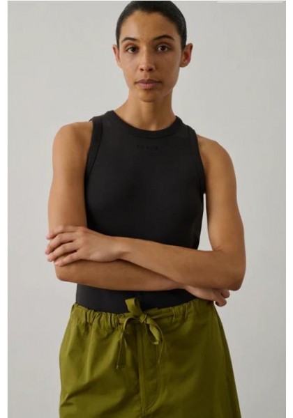 DOLLY es una camiseta sin mangas de jersey de canalé fino. Su corte es recto y ceñido. Una prenda esencial para el armario de verano, que se puede combinar con una camisa o llevar sola. Su cuello redondo, ligeramente elevado, con nuestro logotipo discretamente bordado, y su elegante escote en los hombros la convierten en una prenda atemporal y falsamente clásica. - Corte recto - Sin mangas - Cuello redondo - Bordado de logo en el pecho - Algodón orgánico 100% ALGODÓN ORGÁNICO
