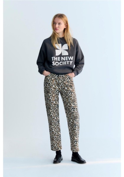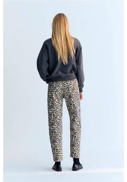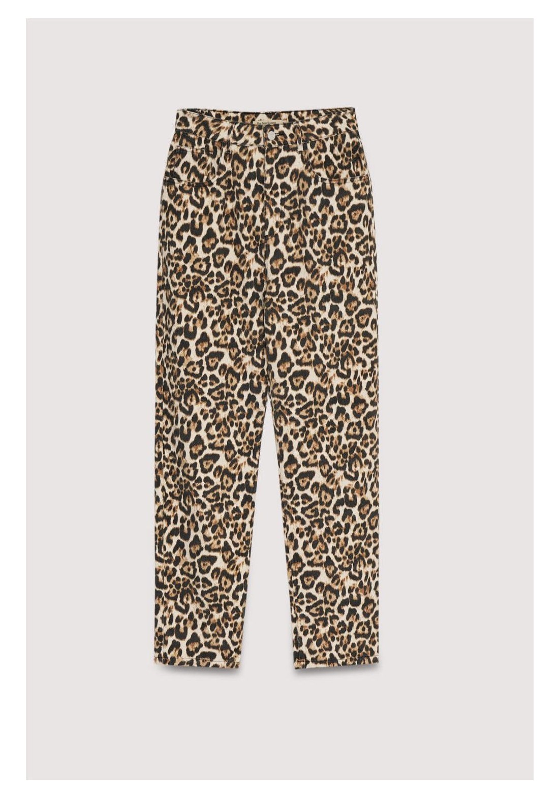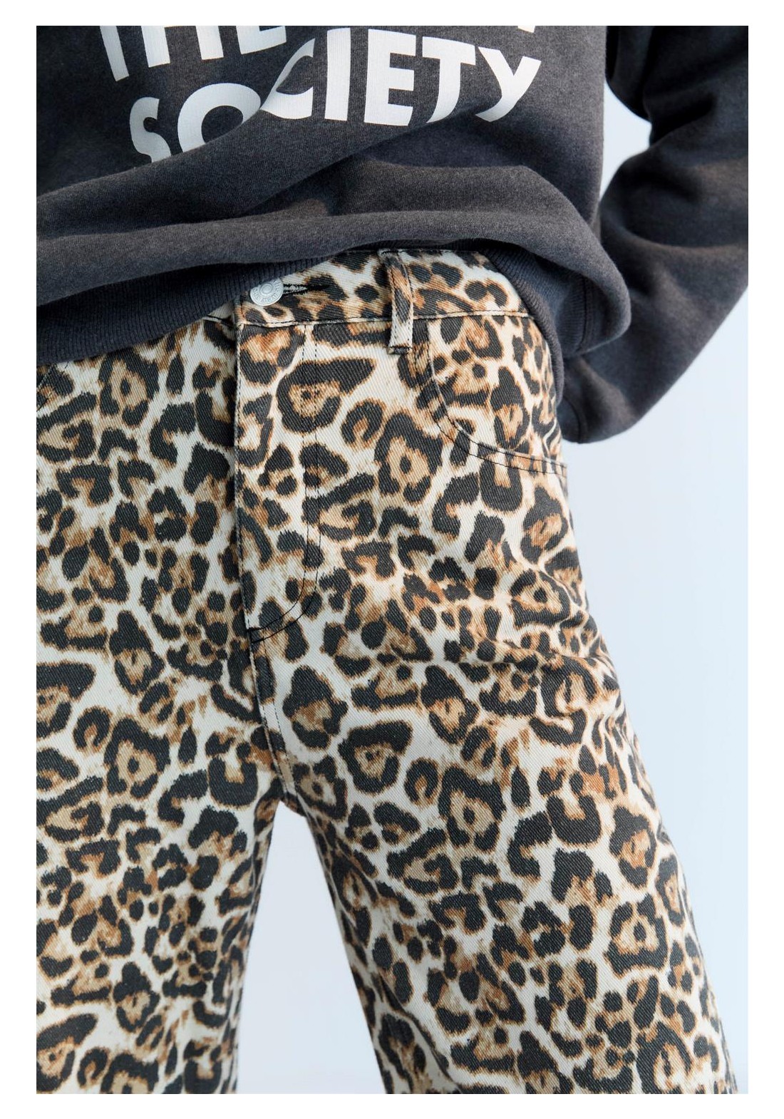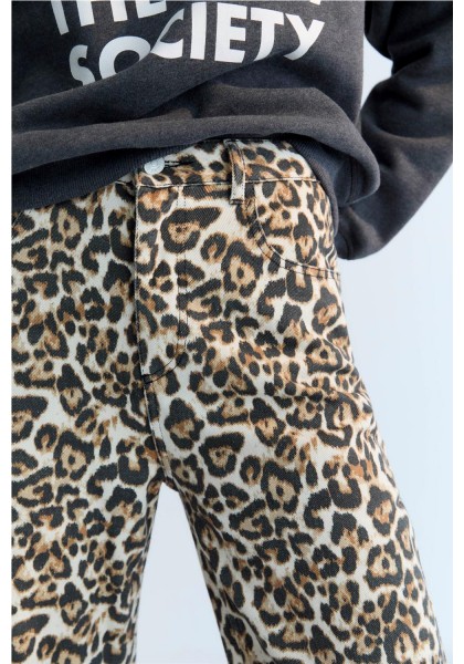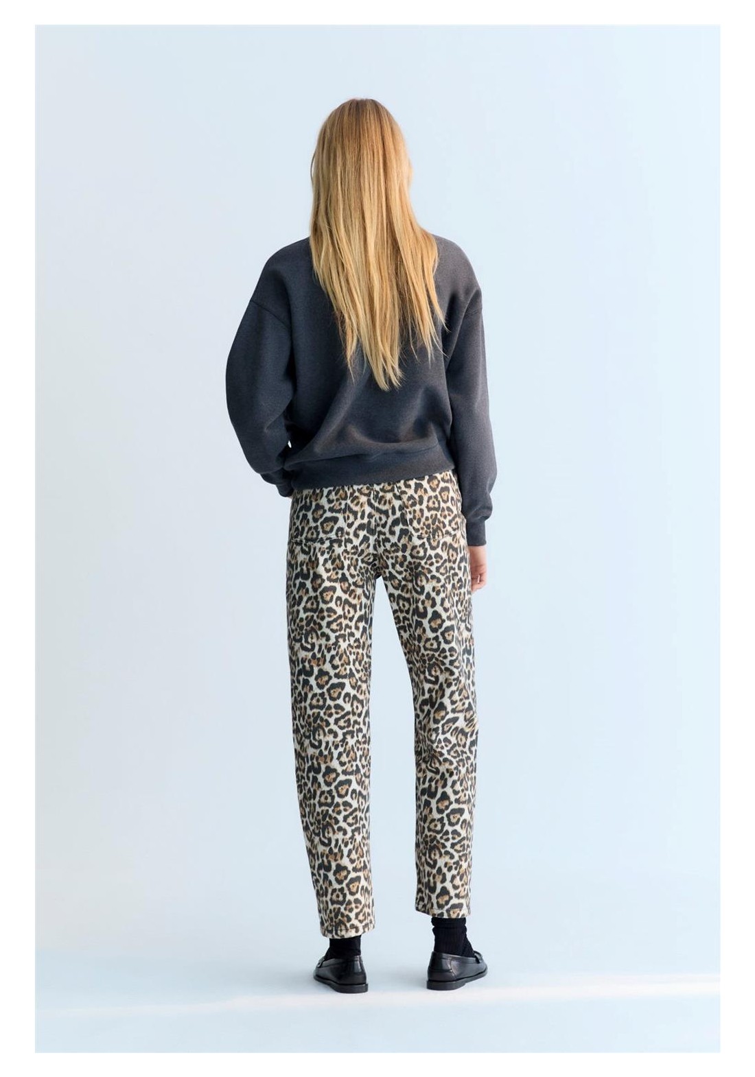 Pantalones vaqueros con estampado de leopardo Pantalones vaqueros de corte regular con un atrevido y elegante estampado de leopardo: una prenda destacada que realzará cualquier armario. Modelo: Altura 180 cm, talla S Hecho en Portugal 100 % algodón BCI