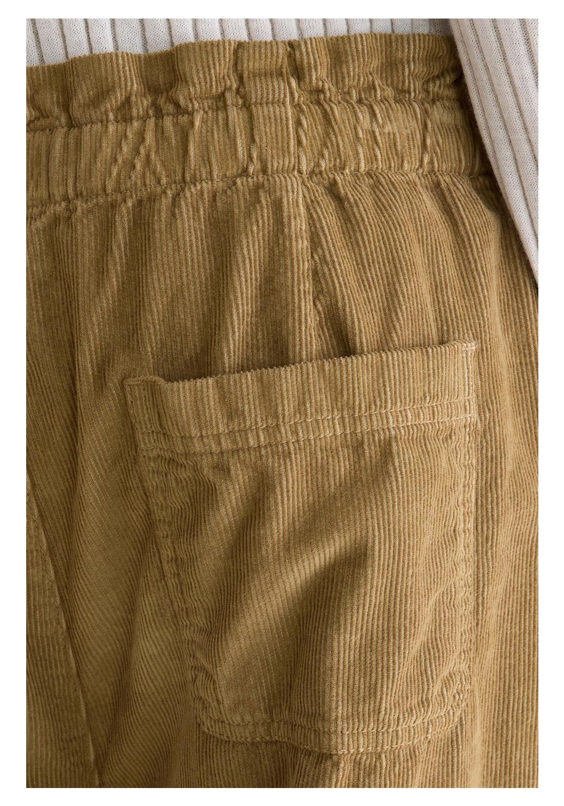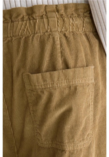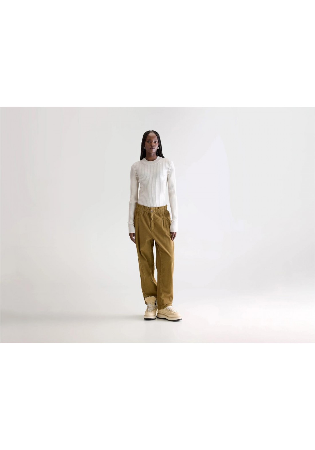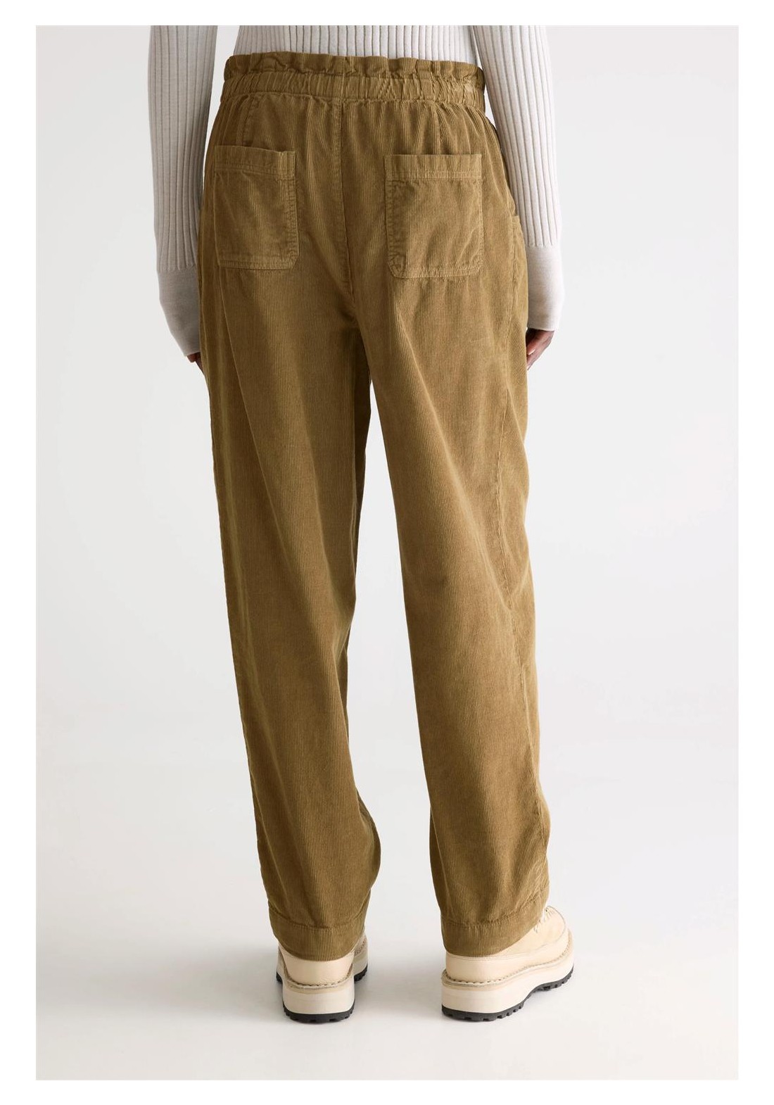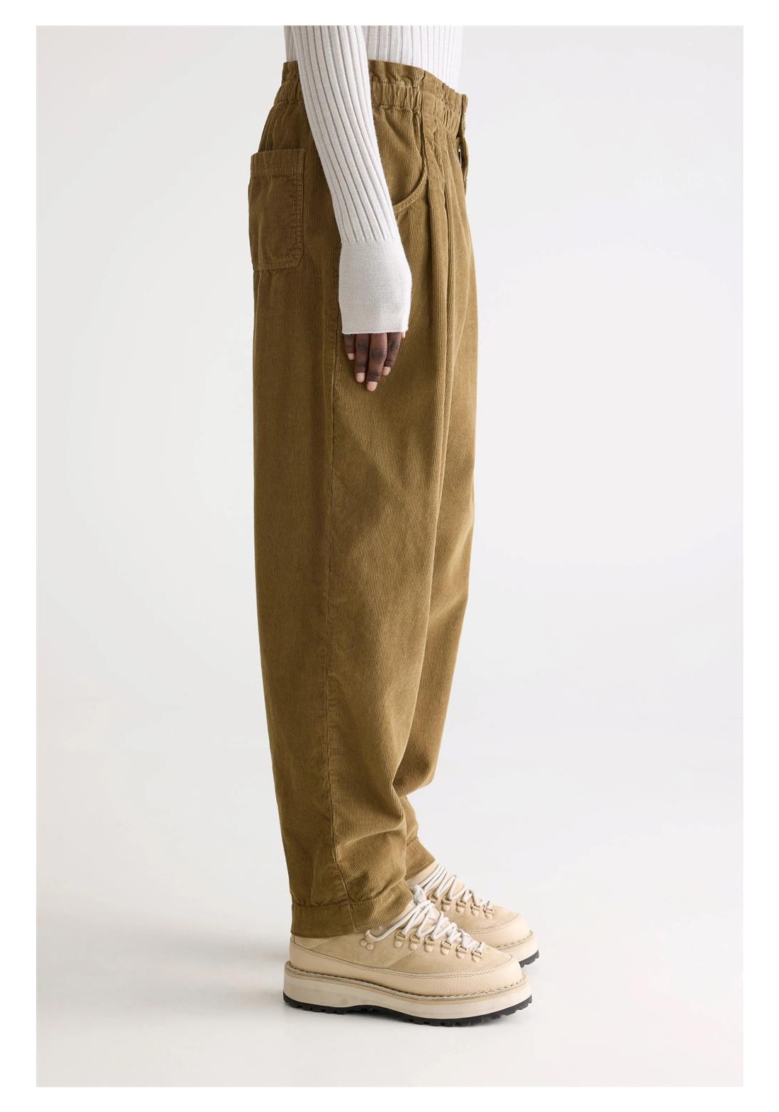 Relaxed fit Tapered legs Paperbag waistband Elasticated waistband Pleated front Side and back pockets Button and zip fly closure