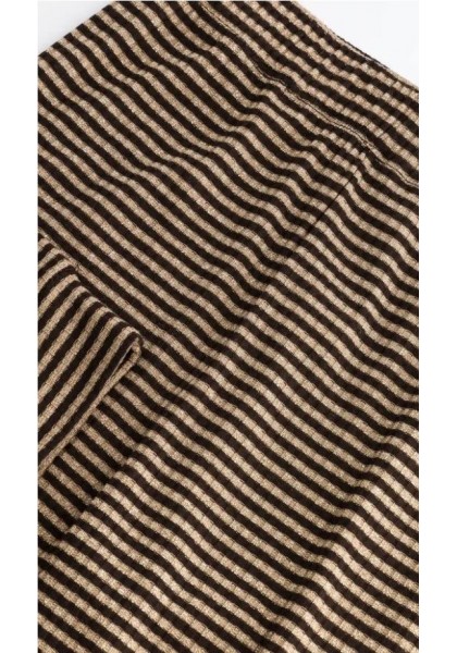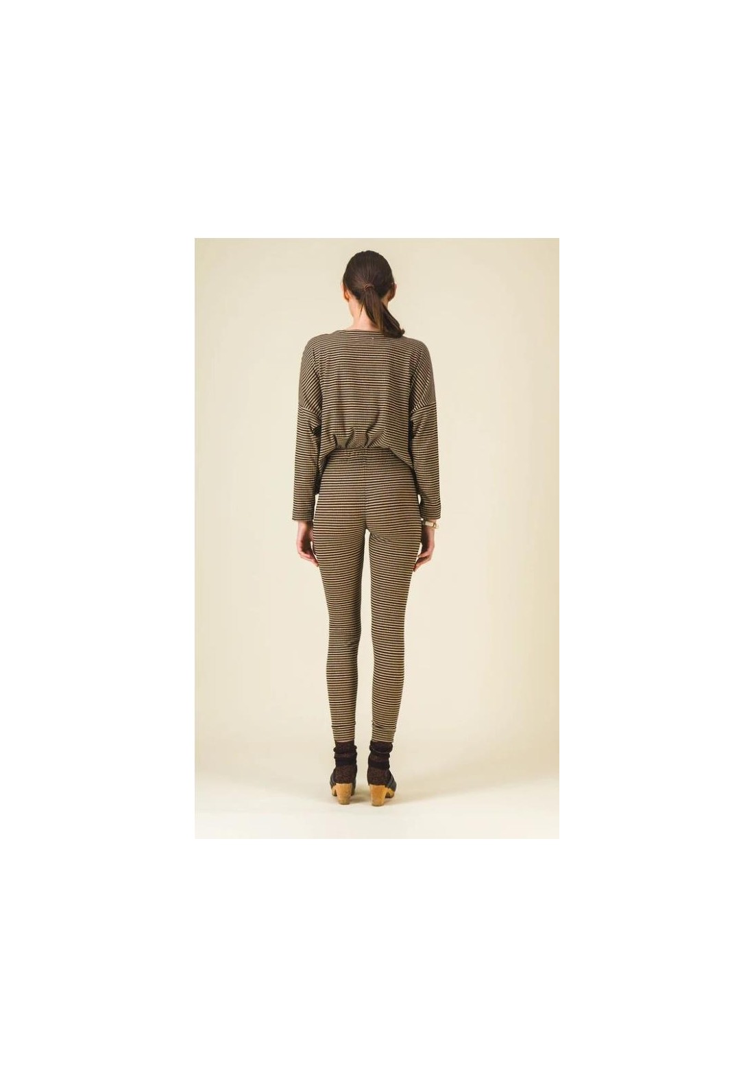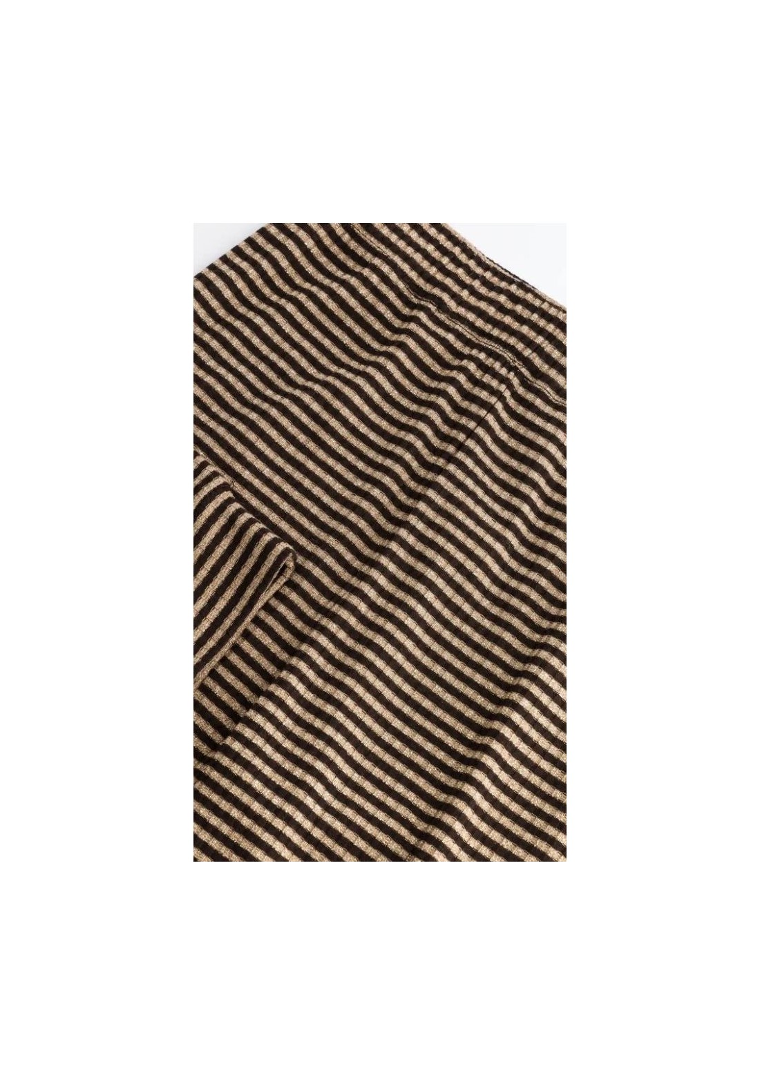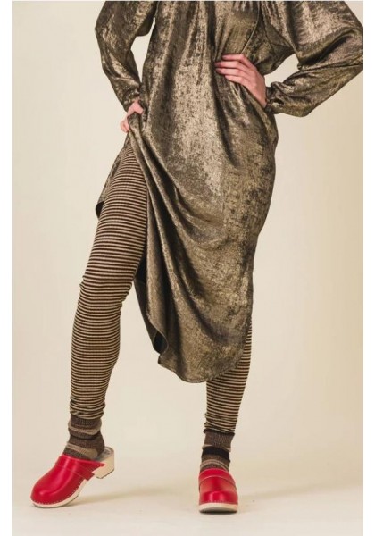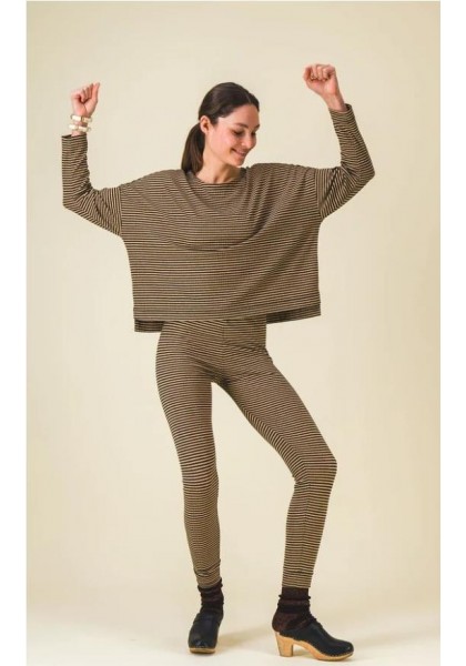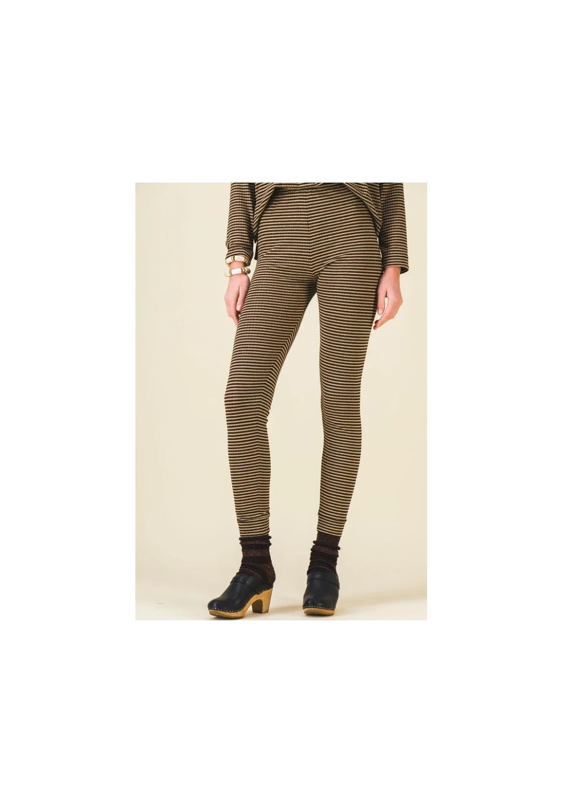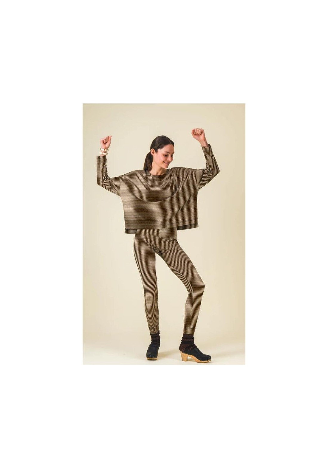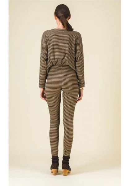 Leggings de rayas marrones y beige para mujer con efecto brillante, ultrasuaves y cómodas. Perfectas para cualquier conjunto, especialmente con una camiseta de rayas marineras. Confeccionadas con el mismo tejido, combinan con todo y se convertirán en tus favoritas. Hechas en París. Hechas en Francia. Composición: 53 % poliéster reciclado, 28 % viscosa, 8 % poliamida, 7 % fibras metálicas, 4 % elastano. Fabricadas en Italia. Lavar a 30 °C del revés. No usar secadora.
