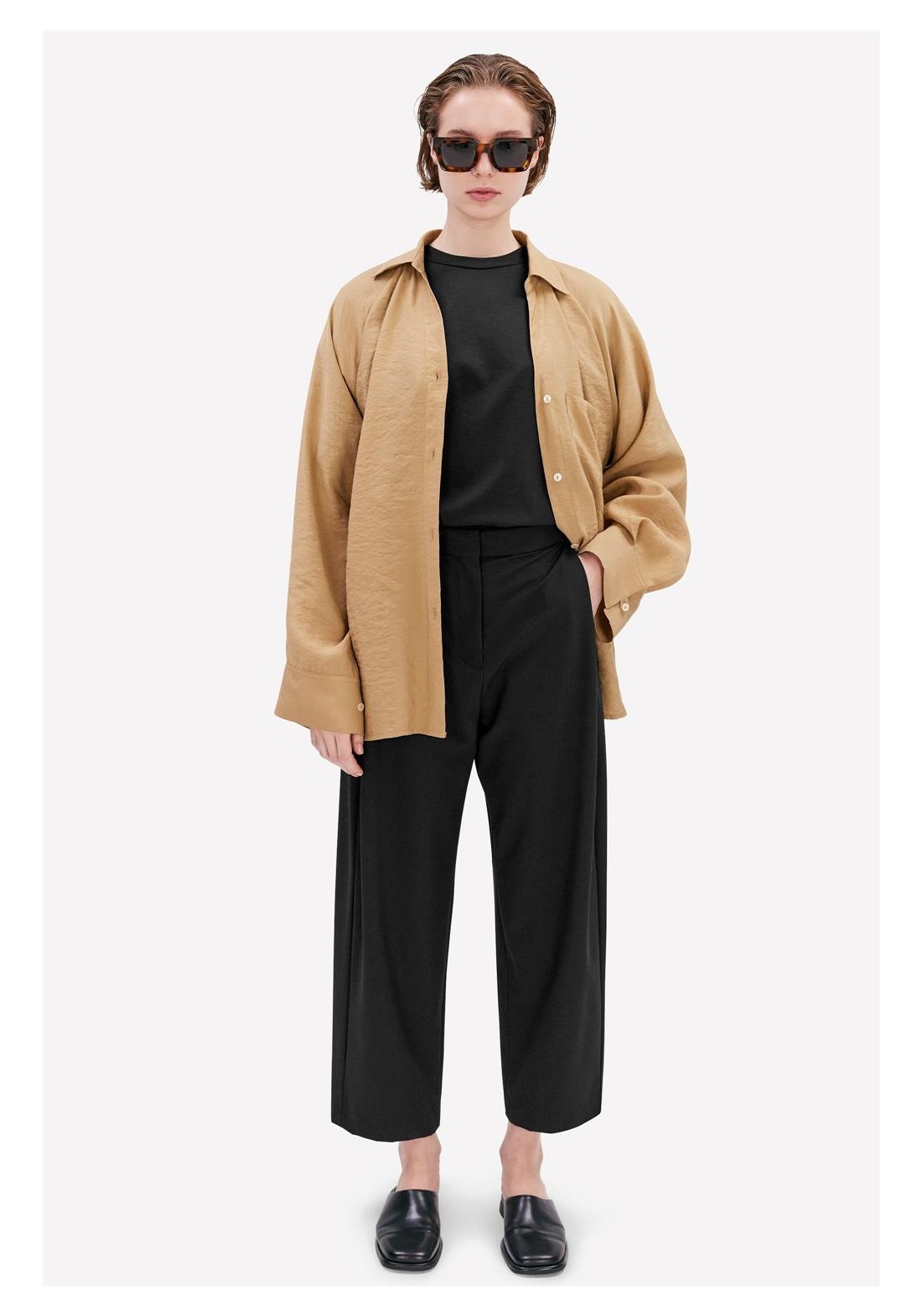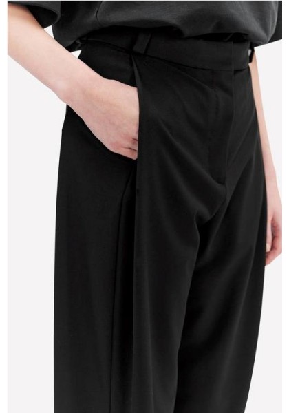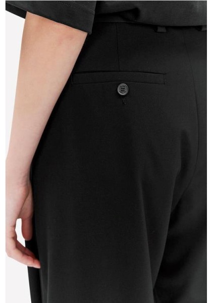 Sandi es un pantalón de vestir de cintura alta. Los amplios pliegues delanteros le aportan volumen y una silueta relajada. Combínalo con una camiseta para un look informal y moderno. La modelo mide 177 cm y lleva una talla 36.