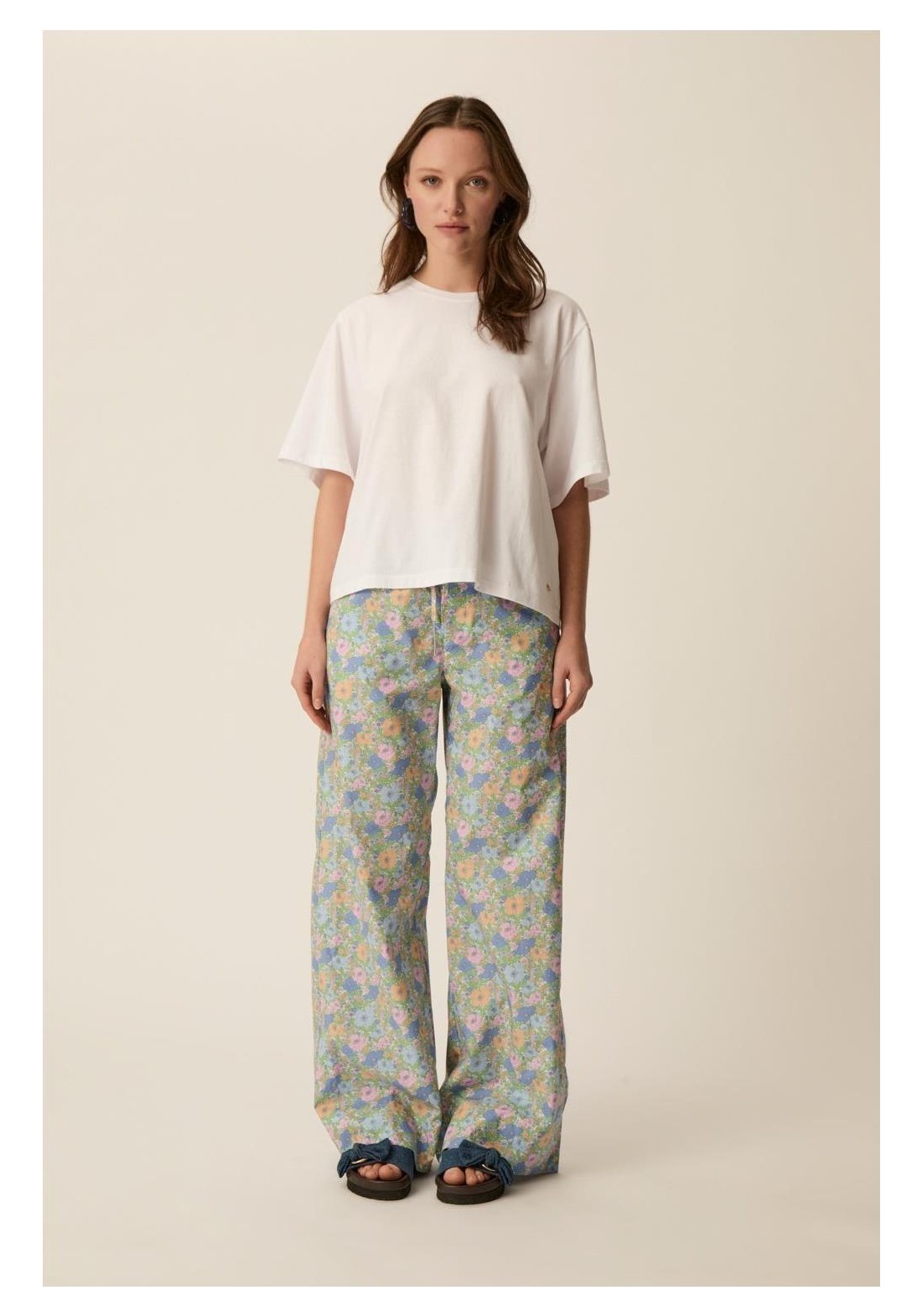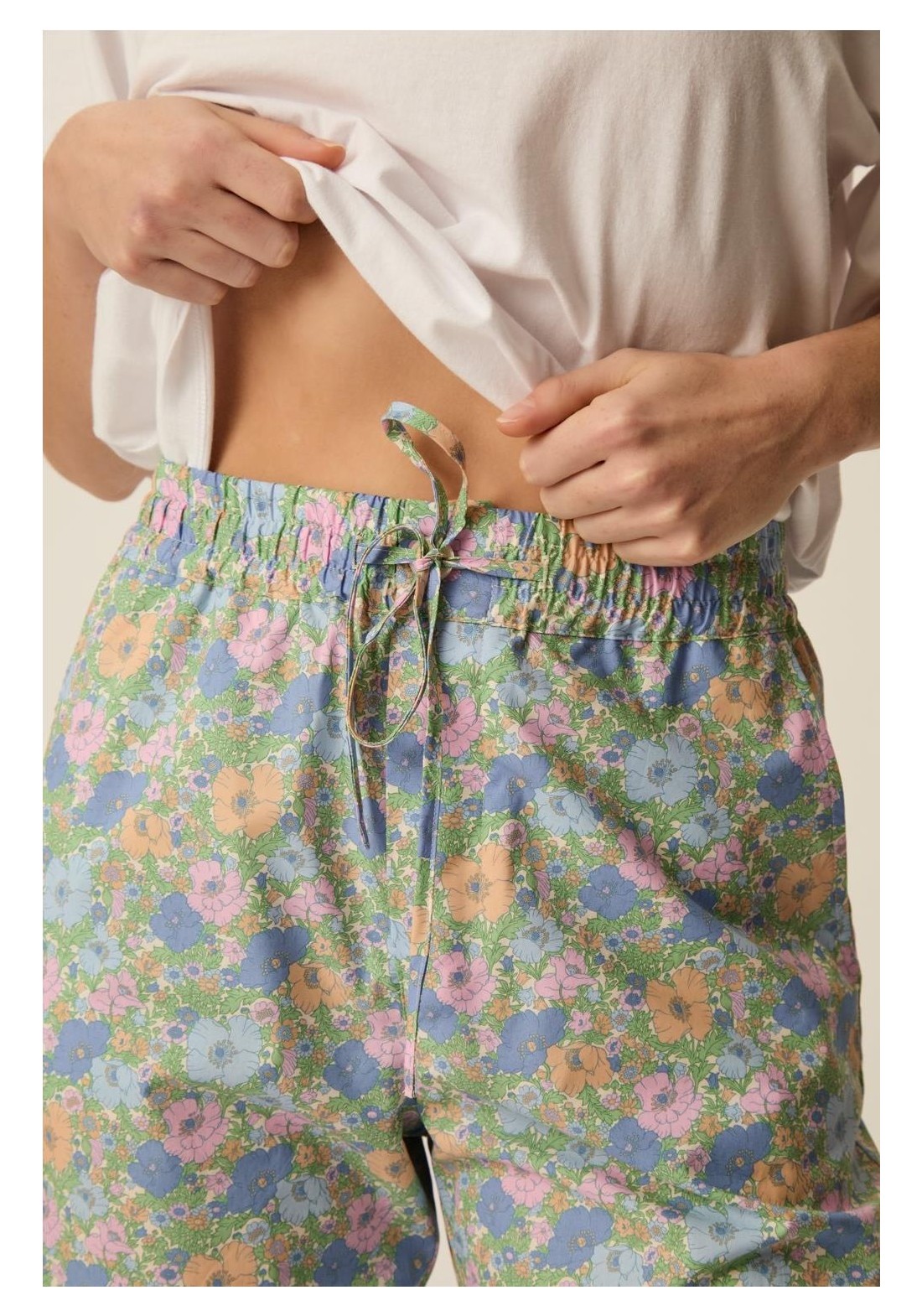 Para celebrar nuestro 25 aniversario, Des Petits Hauts se ha asociado con la prestigiosa casa de tejidos inglesa, en consonancia con la temática de nuestra campaña «Lunes de relax». Descubre las prendas confeccionadas con el tejido Liberty «Berty». Inspirados en la ropa de dormir, los pantalones anchos Totemus están confeccionados con un estampado Liberty en tonos pastel para un look retro y acogedor.