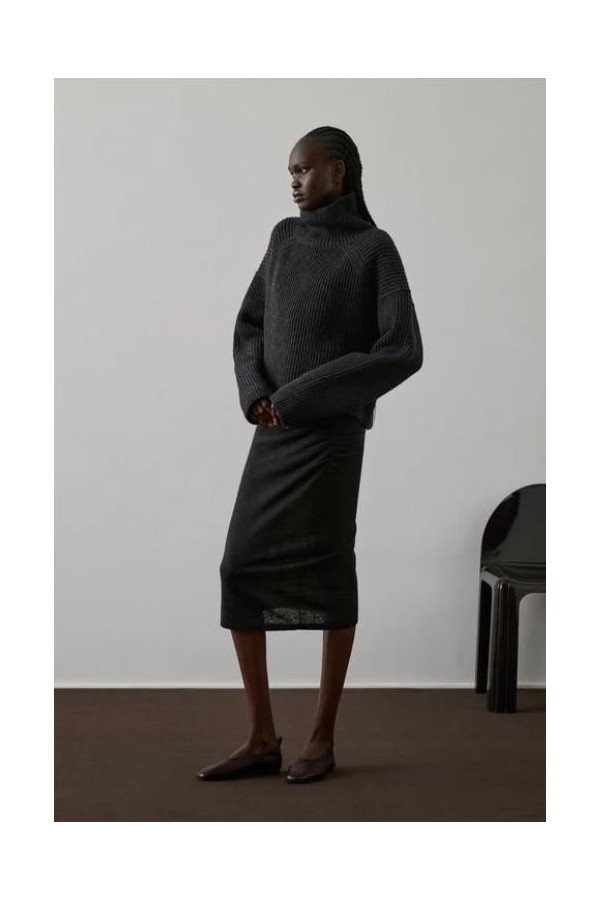 - Corte ceñido al cuerpo - Falda - Fruncidos en la cintura - Cintura elástica - Alpaca y lana 43% POLIAMIDA RECICLADA, 40% BABY ALPACA, 10% LANA, 7% POLIAMIDA Hecho en China Achok mide 1m77 (5'10) y usa una talla 38.
