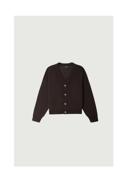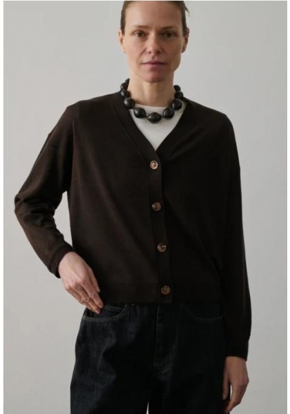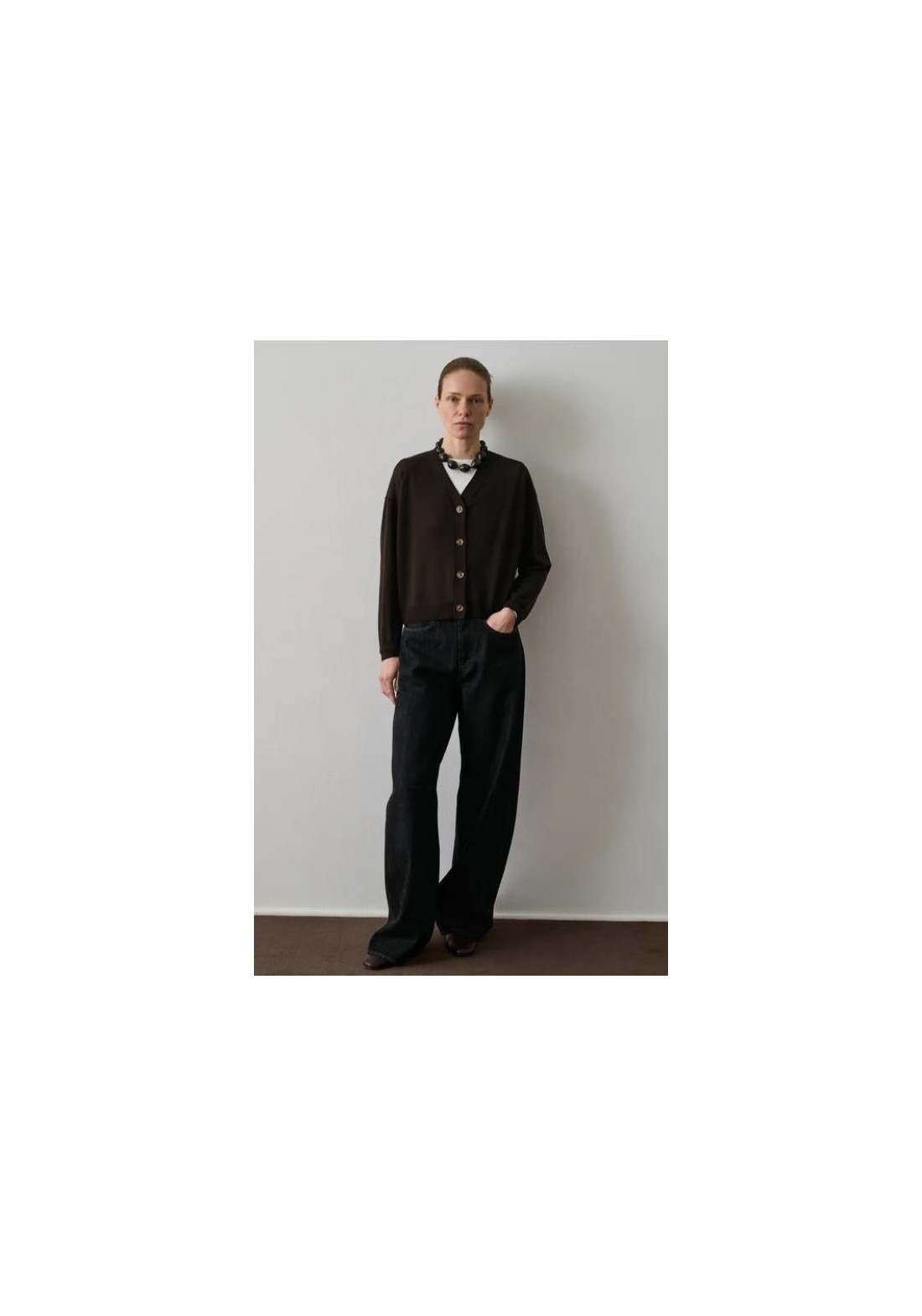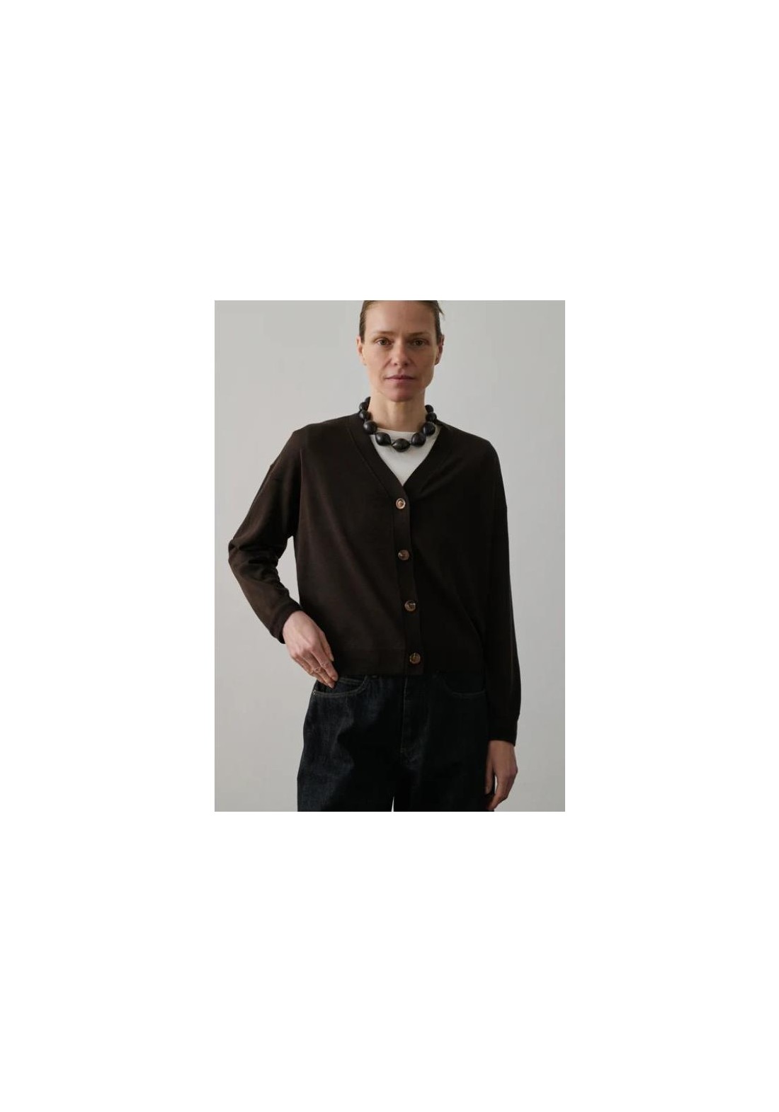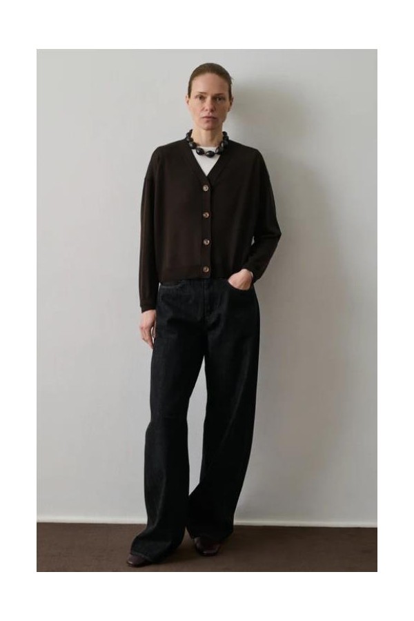 - Corte amplio - Mangas largas - Cuello en V - Abertura con botones en el frente - En lana merino, calibre fino 100% LANA MÉRINOS Hecho en Bulgaria Marta mide 1m80 (5'11) y usa una talla 38.