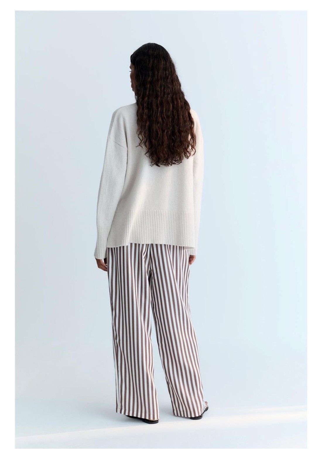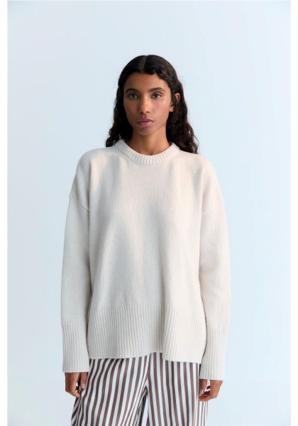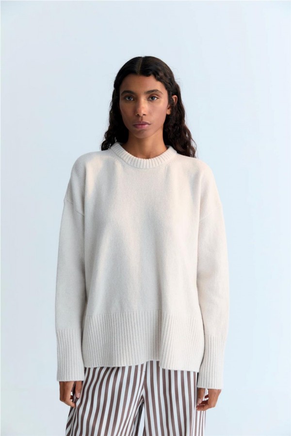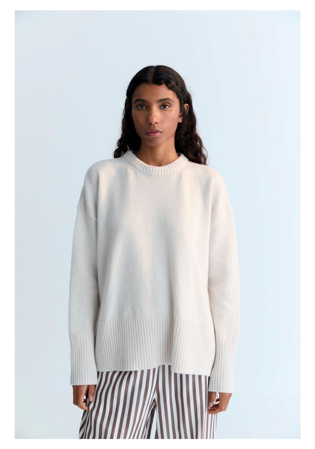 Un lujoso y suave suéter de cachemira con un clásico cuello redondo y ribete ancho en puños y bajo para un ajuste cómodo y estructurado. Las sutiles aberturas laterales facilitan el movimiento y le dan una silueta relajada, lo que lo hace perfecto para combinar con otras prendas o para lucirlo solo y lograr un look elegante y sin esfuerzo. Modelo: Altura 180 cm. Lleva la talla S. Hecho en Portugal Colores: Gris Medio 10 % Cachemira, 90 % Merino Fino