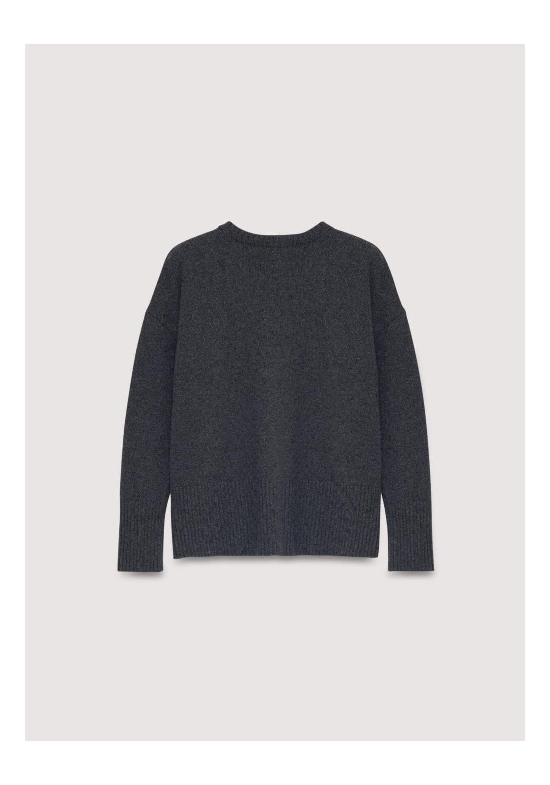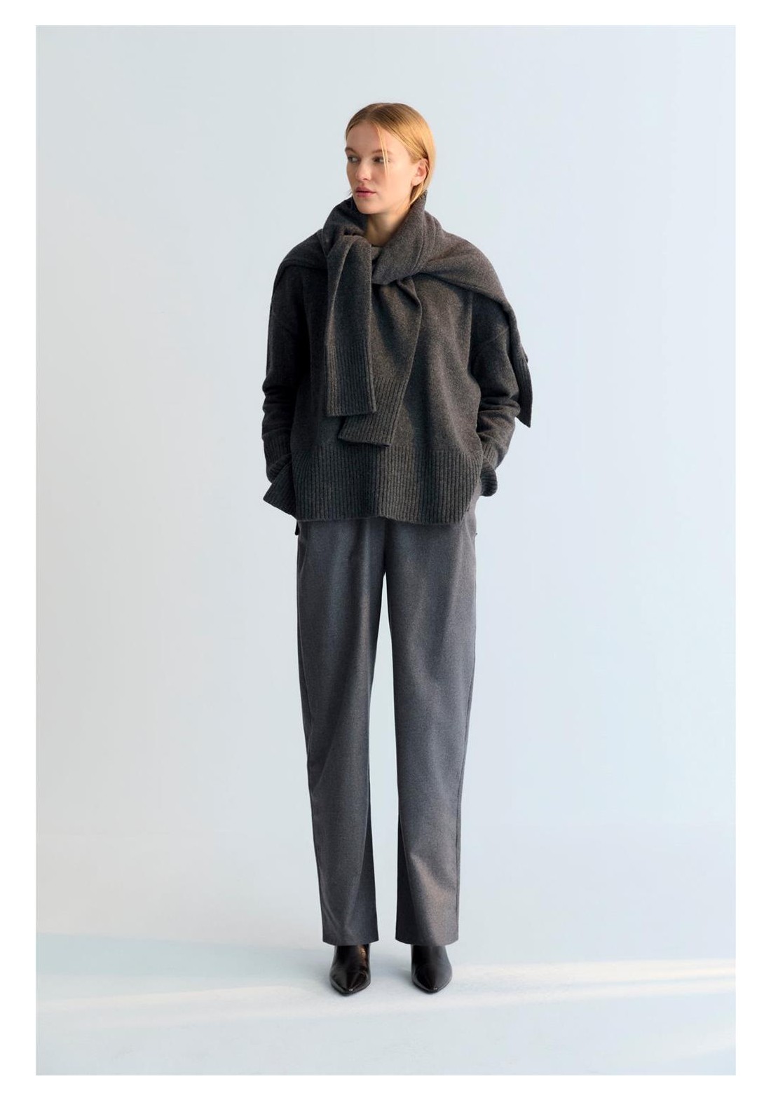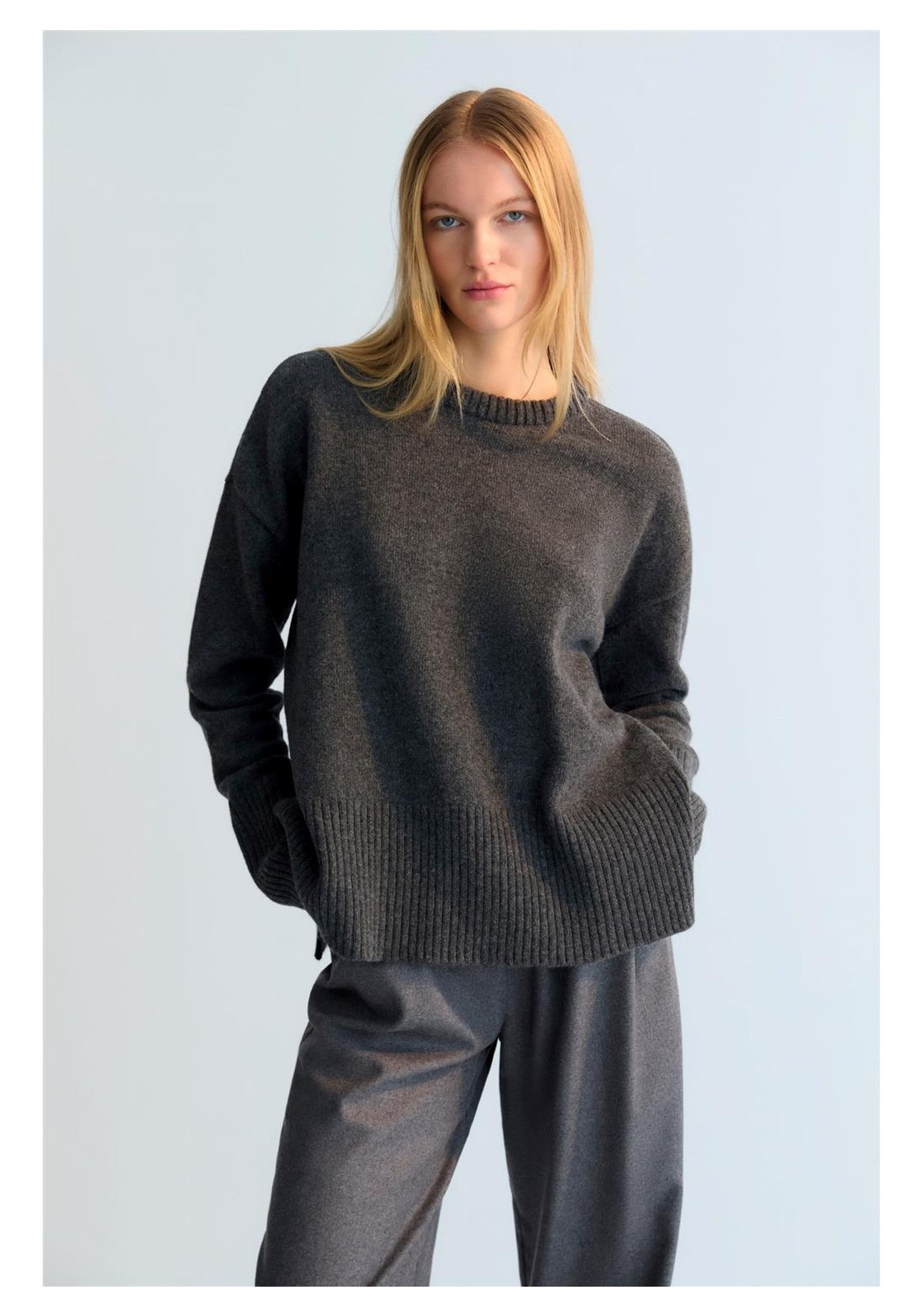 Un lujoso y suave suéter de cachemira con un clásico cuello redondo y ribete ancho en puños y bajo para un ajuste cómodo y estructurado. Las sutiles aberturas laterales facilitan el movimiento y le dan una silueta relajada, lo que lo hace perfecto para combinar con otras prendas o para lucirlo solo y lograr un look elegante y sin esfuerzo. Modelo: Altura 180 cm. Lleva la talla S. Hecho en Portugal Colores: Gris Medio 10 % Cachemira, 90 % Merino Fino