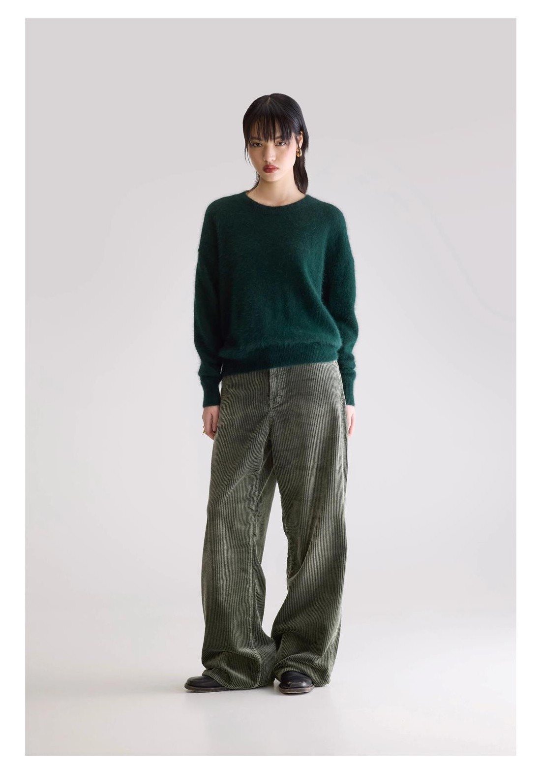 Elige tu talla habitual para el look que buscas o elige una talla inferior para un estilo más ajustado. Corte oversize: Corte amplio diseñado a propósito para un look voluminoso. Mangas largas Hombros caídos Cuello redondo Bordes acanalados Gama media, 1 capa