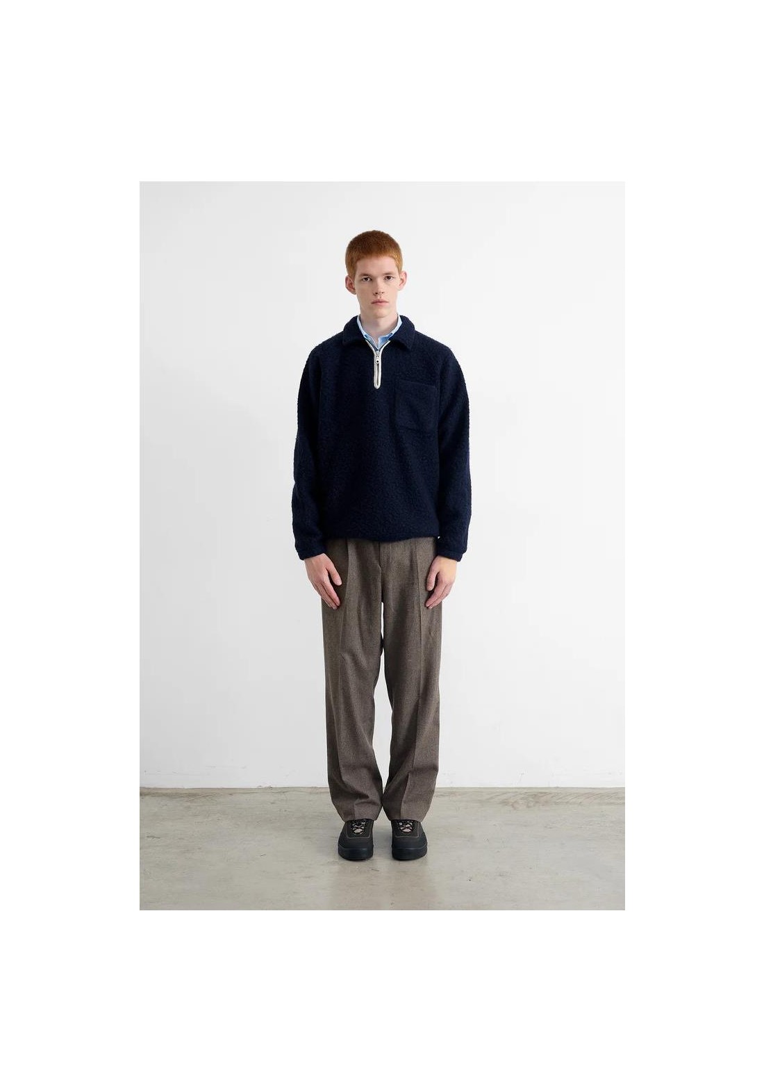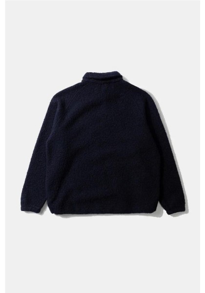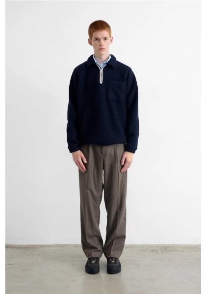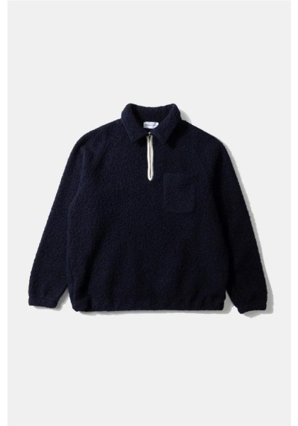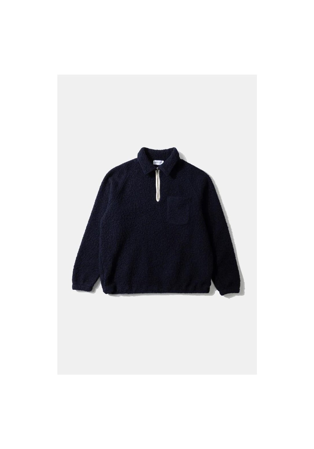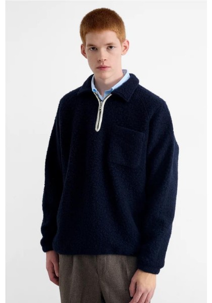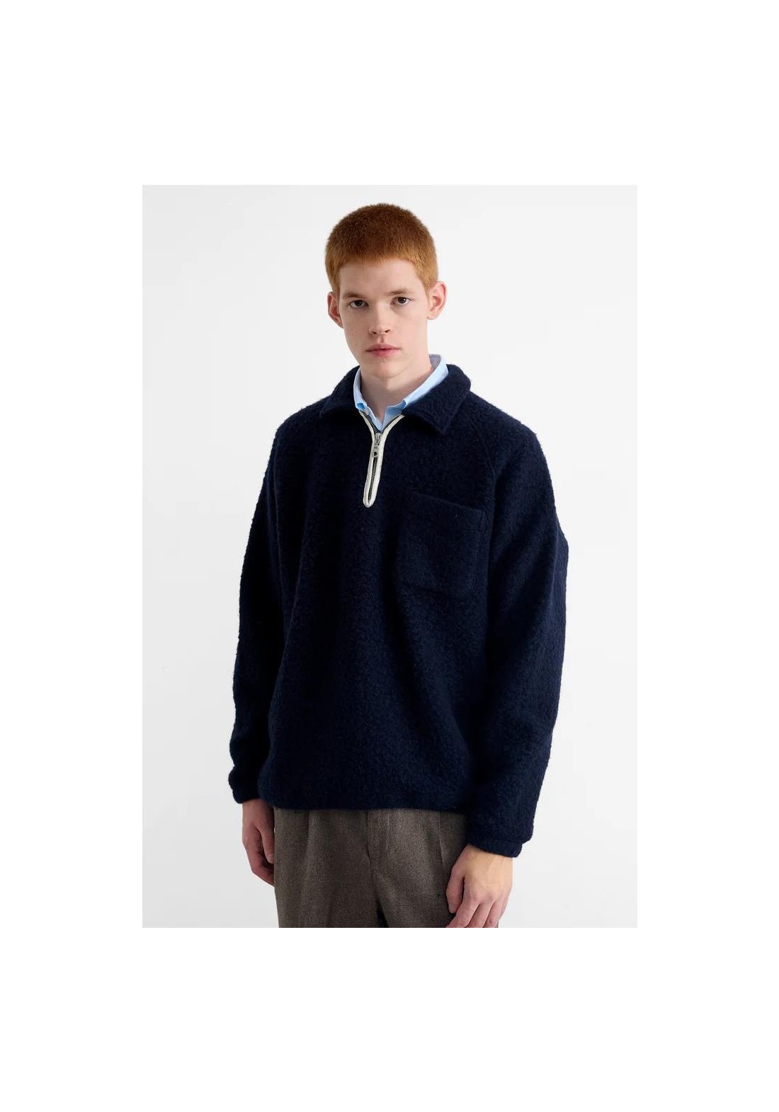 Polo azul marino con solapa y cremallera terminada en blanco hasta la altura del pecho. Confeccionada en 100% poliéster. Corte recto y gran bolsillo en el lado izquierdo del pecho. Fabricada en Portugal. El modelo mide 186 cm y lleva la talla L.