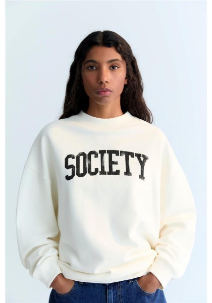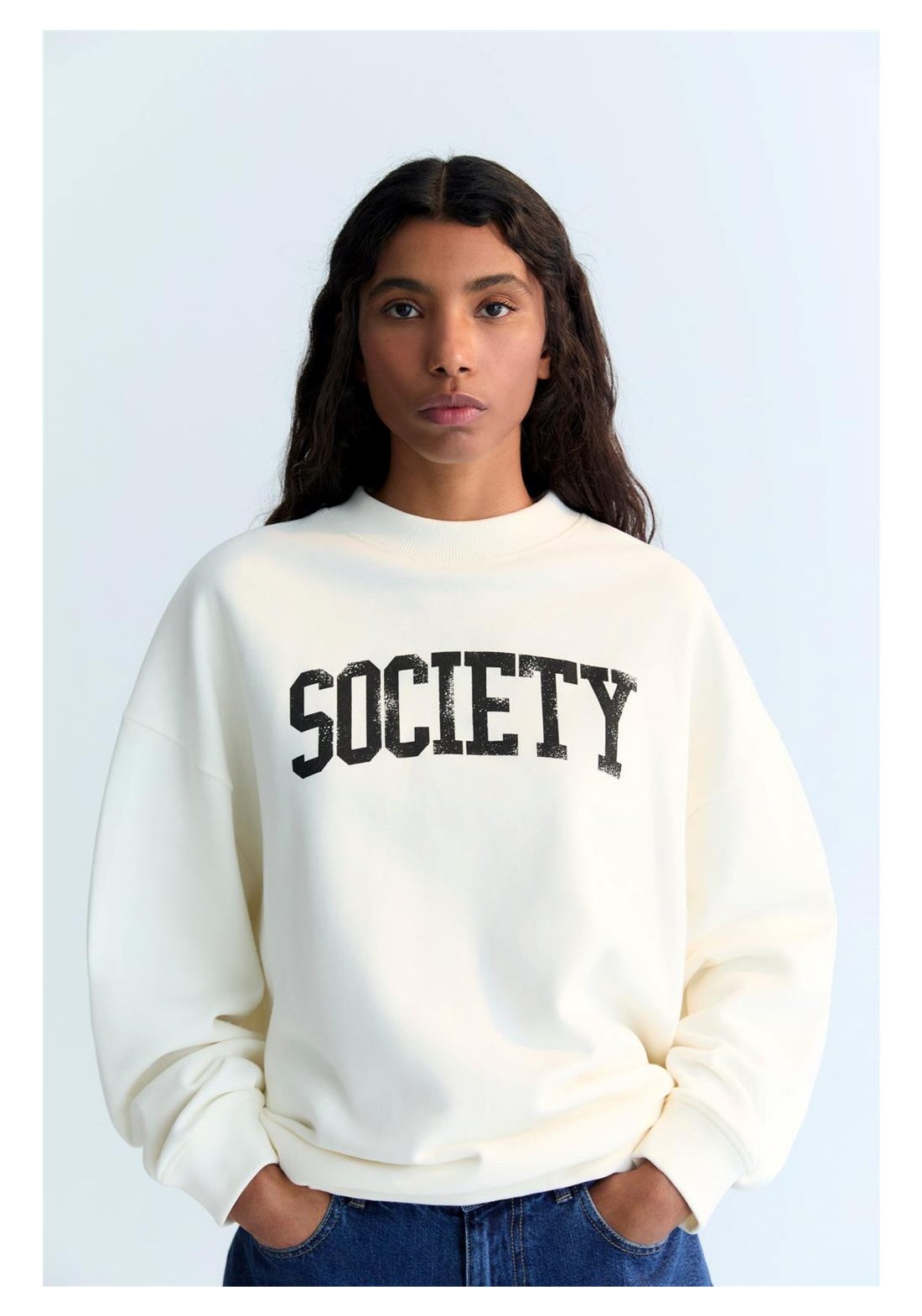 Relajada y con un estilo relajado y fresco, esta sudadera oversize gris lavado presenta un llamativo estampado SOCIETY en contraste en la parte delantera. Cepillada tanto por dentro como por fuera, ofrece una suavidad y comodidad excepcionales, convirtiéndola en una prenda esencial para el día a día. Modelo: Altura 176 cm. Lleva la talla S. Hecho en Portugal. Colores: Blanco Lunar. 100 % algodón GOTS.