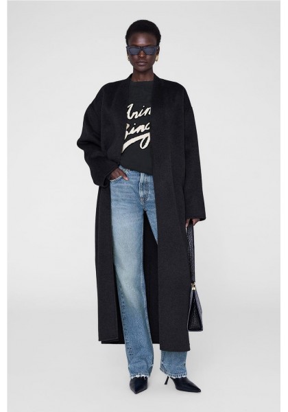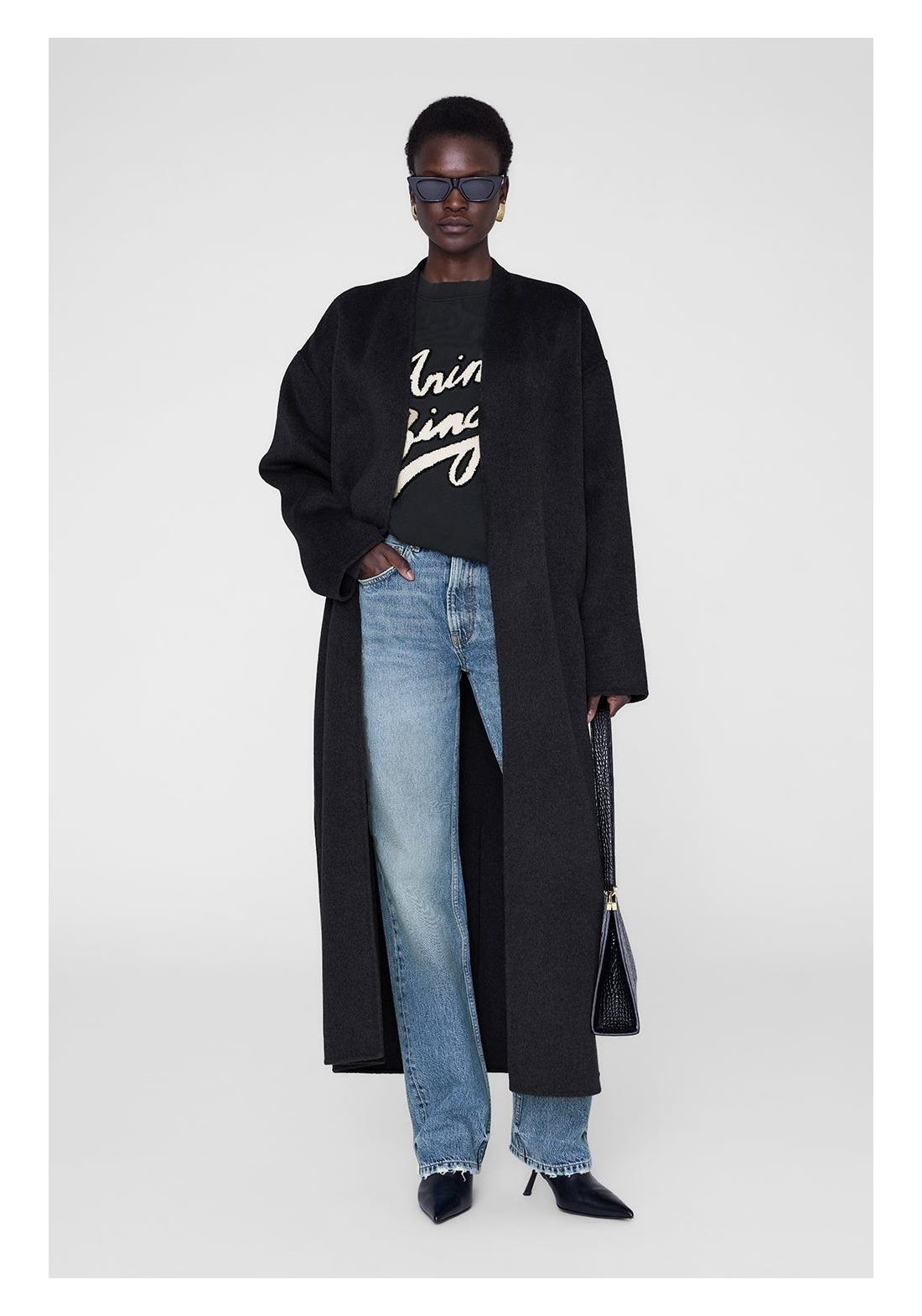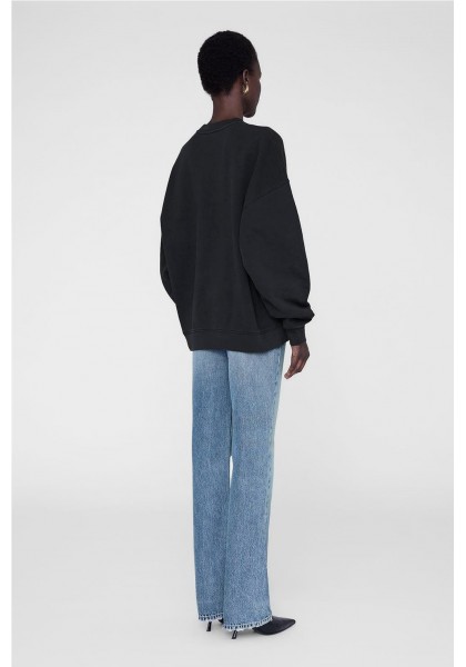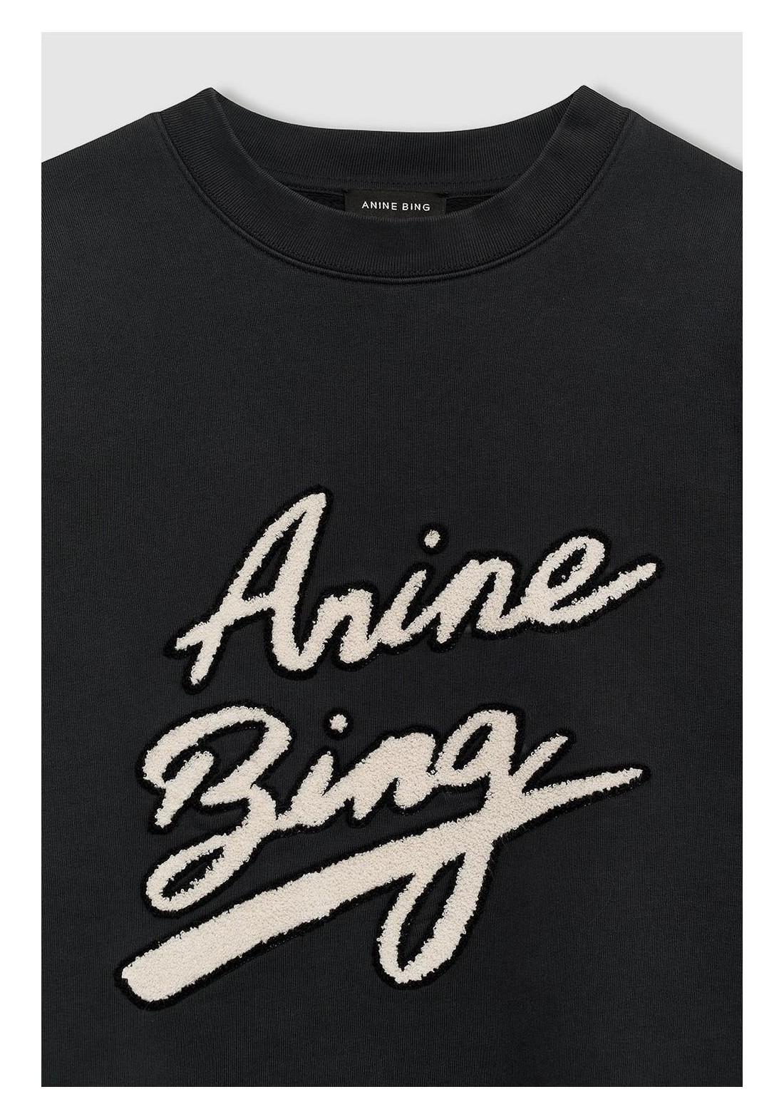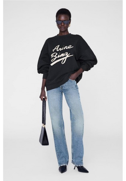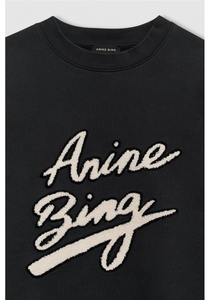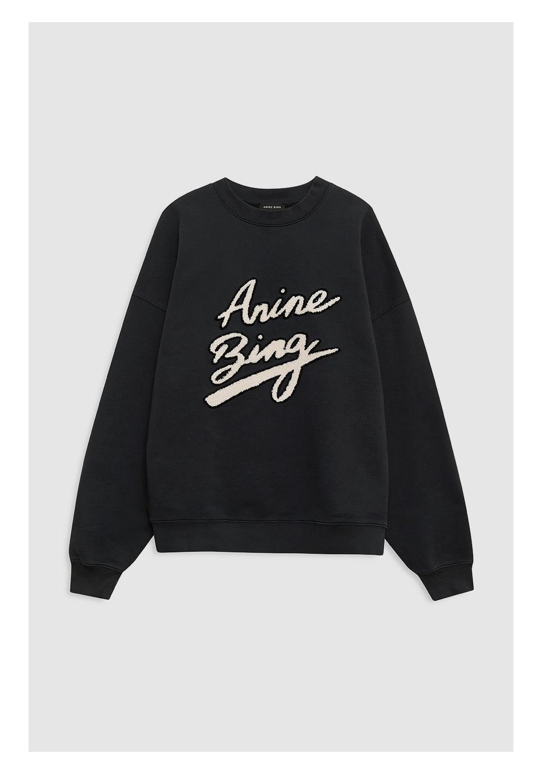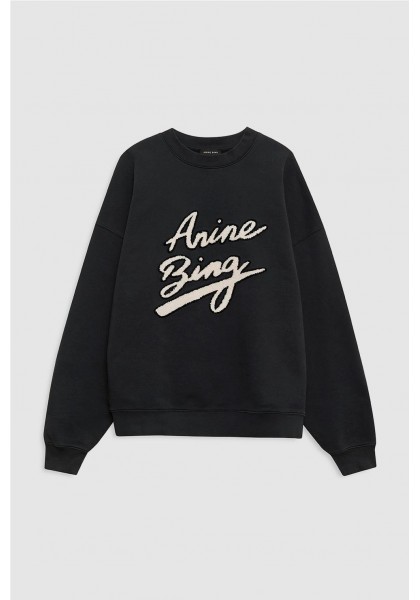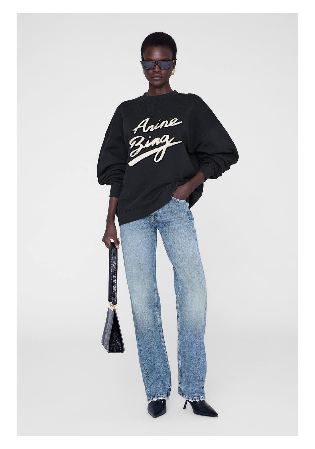 Un jersey oversize de cuello redondo confeccionado en felpa de algodón 100% de peso medio, color negro, con interior cepillado. - Felpa de algodón - Corte holgado y oversize - Estampado de chenilla en el pecho 100% Algodón