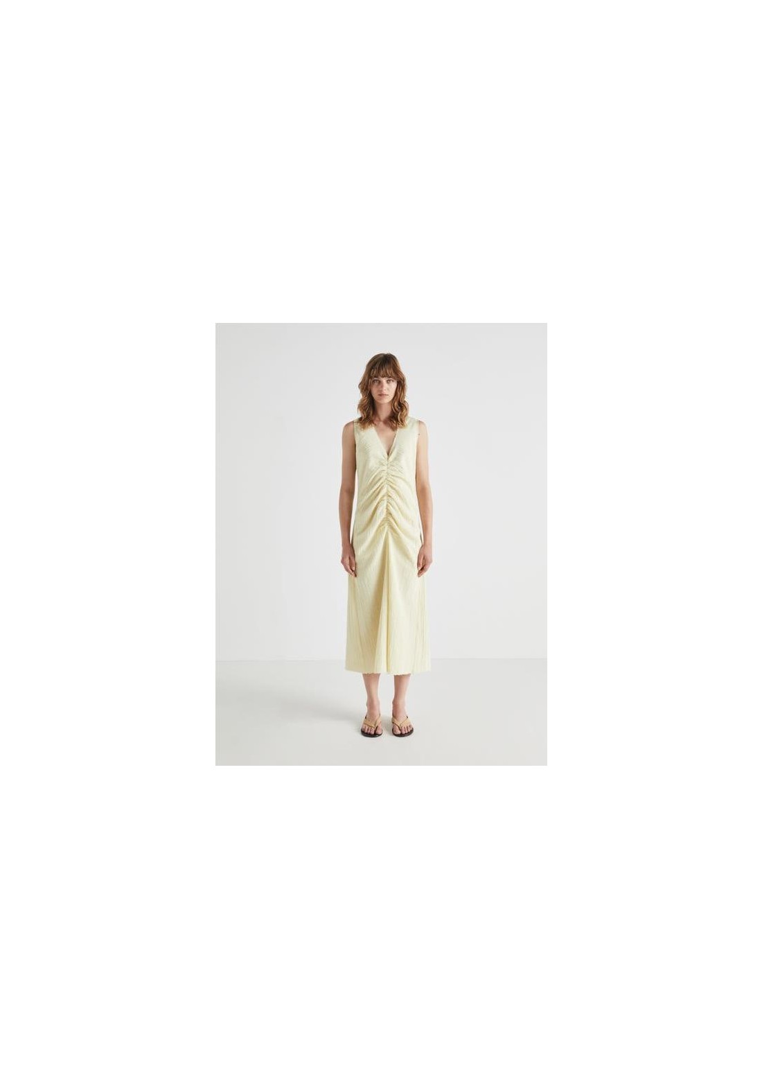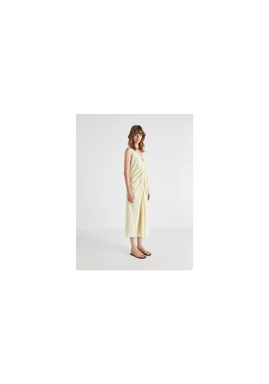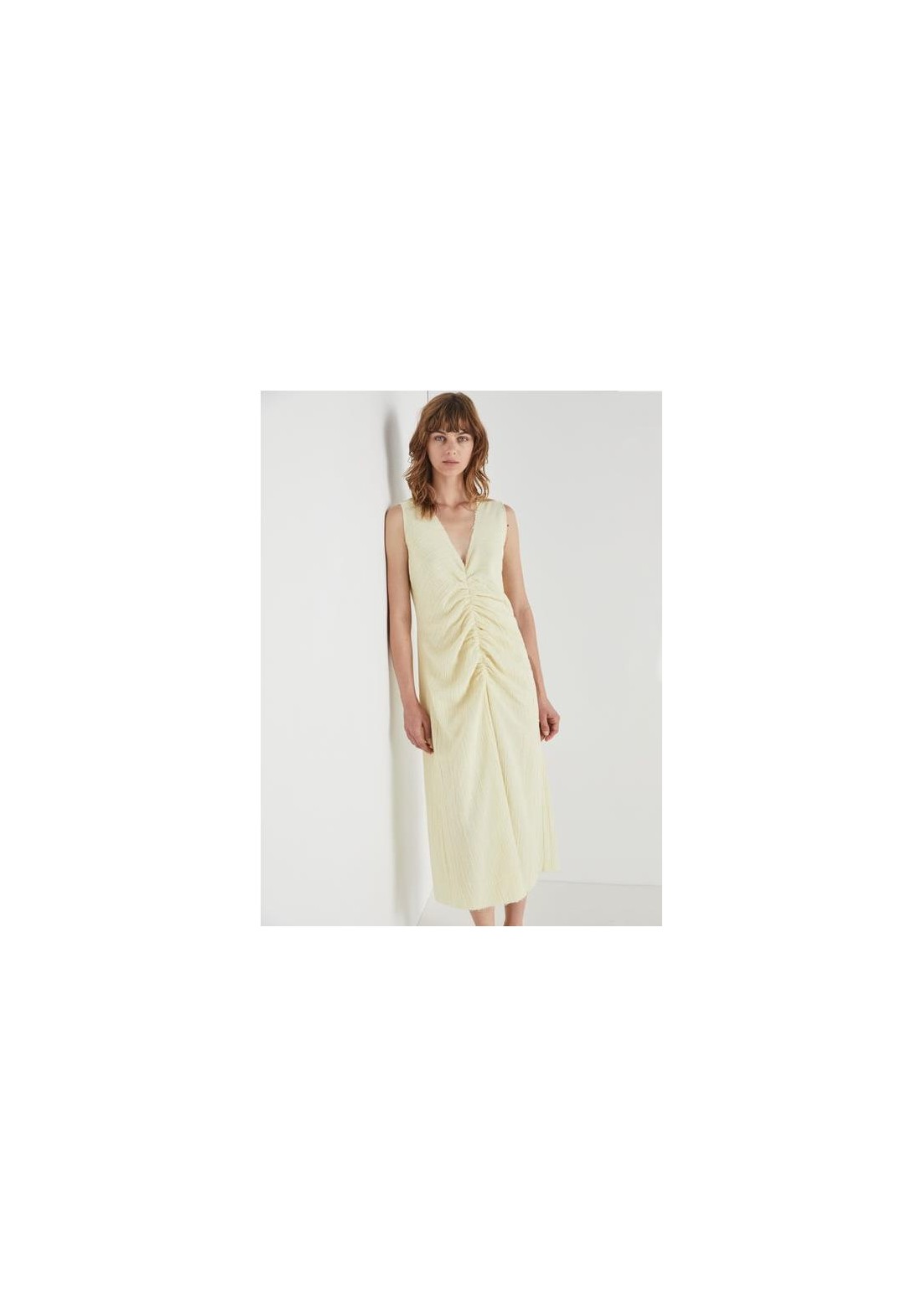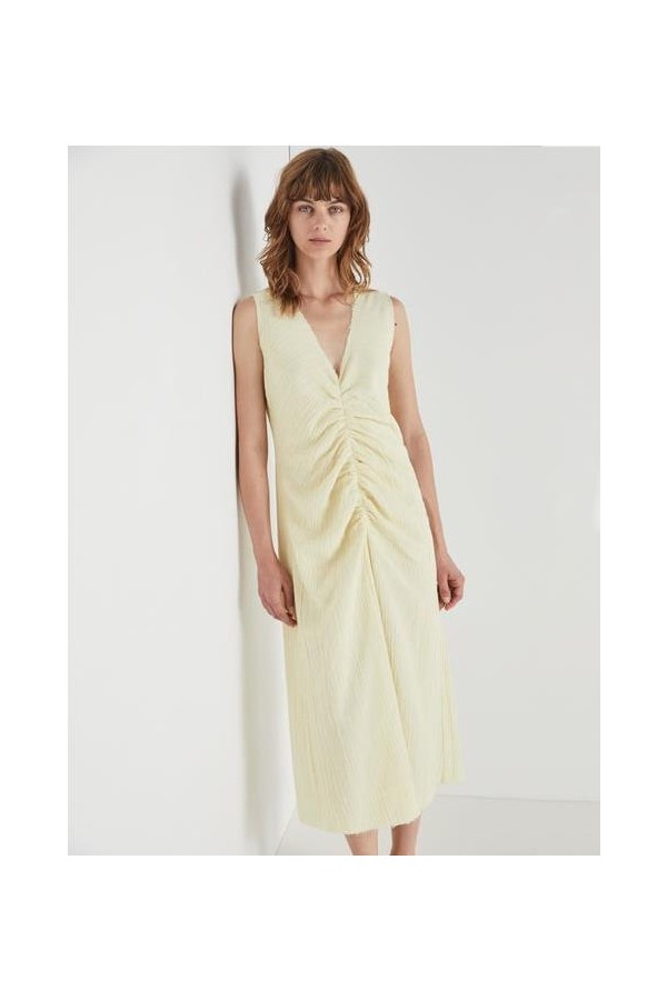 Designed and manufactured in Galicia, Spain.Escote en V, sin mangas, fruncido en la parte delantera. Corte regular, largo. Composición: 100% algodón. Color: Lima. Modelo: 1,76 m de altura, talla S.